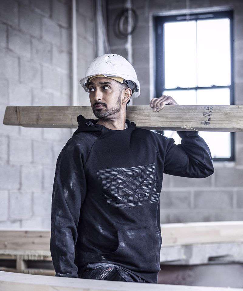 The Pro trade hoodie blends everyday comfort with modern design. Made from a durable, cotton-polyester, brushed back fabric, it features a graphic print, adjustable grown-on hood and kangaroo pocket – ideal for tradespeople who value both practicality and style.