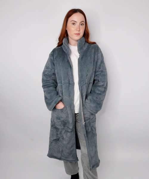 Cosy up and get comfy with this luxurious faux fur gown, with a snuggly warm sherpa lining and front zip fastening. Say goodbye to the cold days and nights in this oversized, one size fits most gown, with two large pockets to keep your hands warm too!