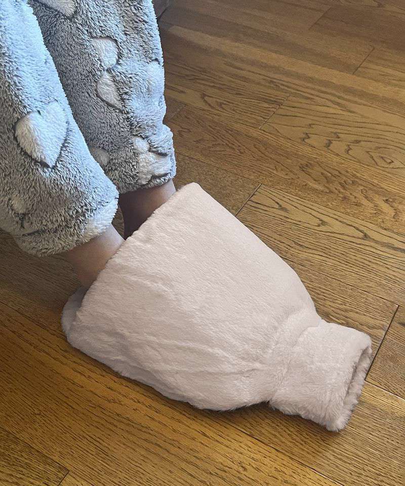 RI023: Luxury foot hot water bottle and cover in plush faux fur