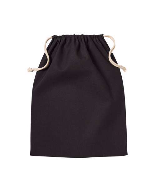 Stuff bag. Double drawcord closure. Natural pull ties. Certified 150gsm organic cotton.