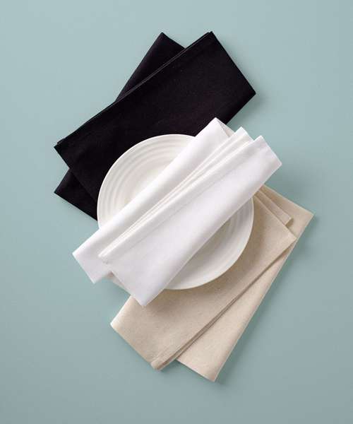 Napkin. Hemmed edges. Packed flat ready for printing. Certified 200gsm organic cotton.