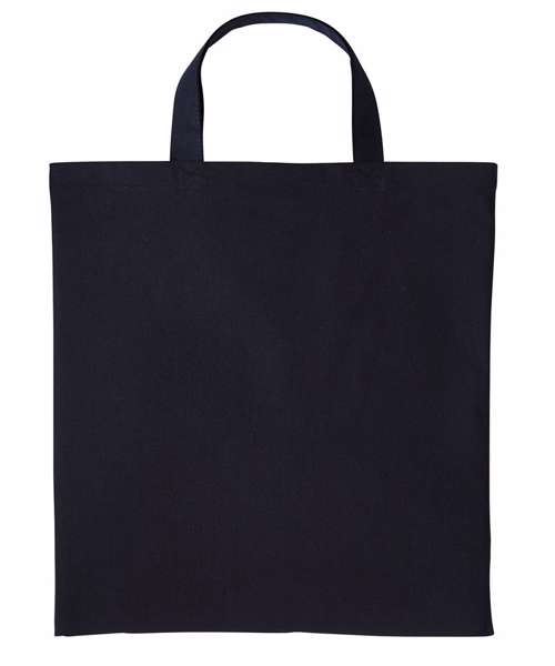 Classic cotton shopper. Short handles, 35 x 2.5cm. Inside hemmed sewing. Cross-stitches at handle. Perfect print surface.
