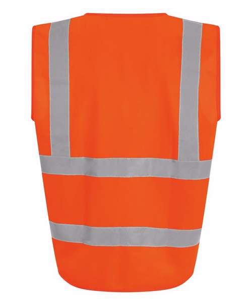 Certified EN ISO 20471:2013+A1:2016. RIS-3279-TOM ISSUE 1:2016 (Orange only). HV Orange & HV Yellow - Class 2. Two-Colour - Class 1. Solid Colours - Non Certified. Full front tear and release fastening. Over shoulder and around body reflective tape.