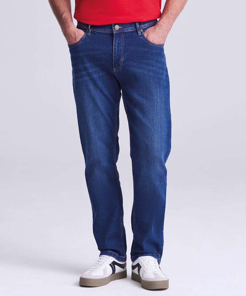 Made from a 10.5oz soft stretch, comfortable denim and cut to sit on the hips, these modern and versatile jeans have a straight fit and traditional 5 pocket styling making them great for everyday wear.