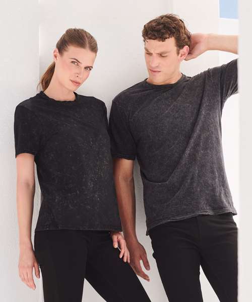 Tear-out label. Unisex crew neck washed t-shirt. Stretch ribbed neck. Shoulder-to-shoulder taping. Twin-needle stitching around neck and hems. Due to washing process each garment is unique. The effect may vary further after washing, adding to the character of this style. Due to washing process each garment is unique. The effect may vary further after washing, adding to the character of this style. Always wash with like colours to avoid staining light coloured garments.