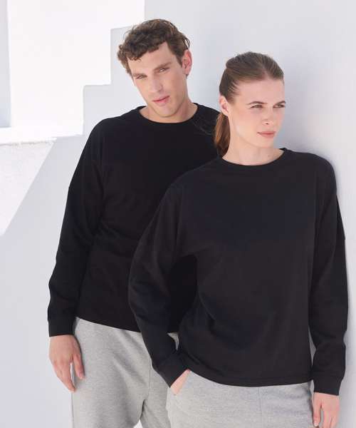 Oversized means more space for displaying cool brands and slogans. This retro heavyweight Jersey has a dropped armhole for even more decoration surface and dipped back hem for a flattering relaxed fit. Finished with a ribbed neck and cuff with cover stitch detail, and tear-out label for easy rebranding. It's also garment washed for a cosy soft-hand feel. It just gets better.