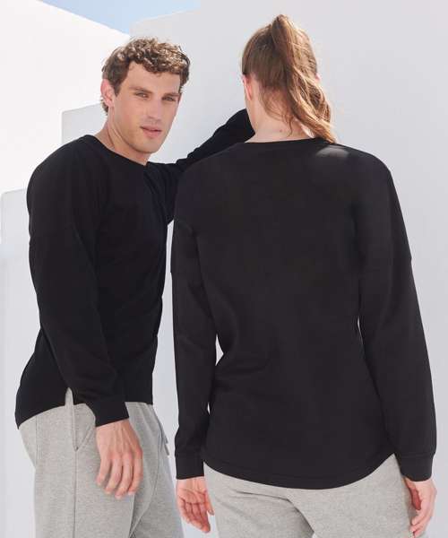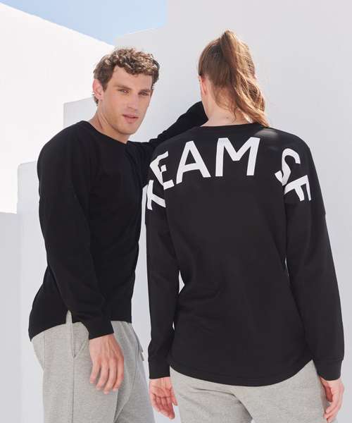 Tear-Out SF(Skinnifit) label. Oversized with dropped armhole for optimised decoration surface. Ribbed neck & cuff with cover stitch detail. Straight front; Dipped back hem.