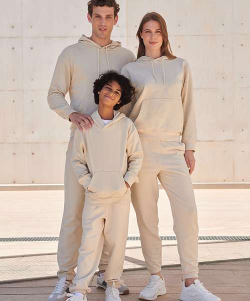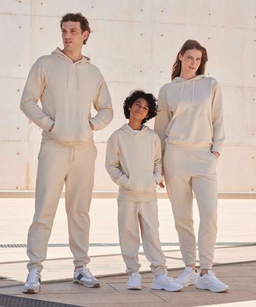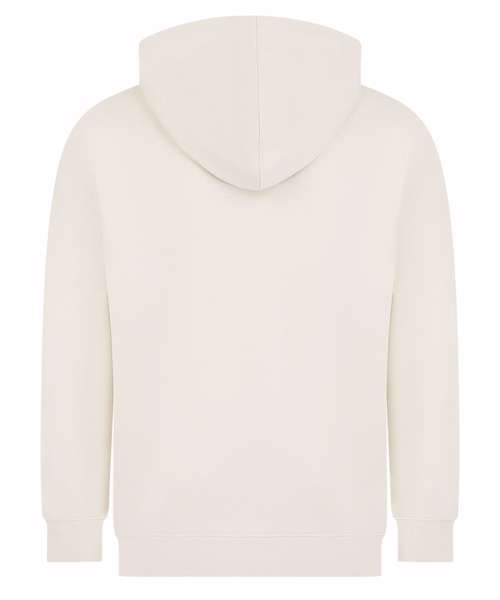 Unisex relaxed-fit hoodie. Set-in sleeves, dropped shoulders. Droptail hem – curved high front, low back. Ribbed hem cuffs. Single Jersey back neck tape and hood lining. Dyed-to-match drawcords. Kangaroo pocket. Tonal topstitching detail. Brand-free, for easy rebranding. Contains recycled cotton and recycled polyester.