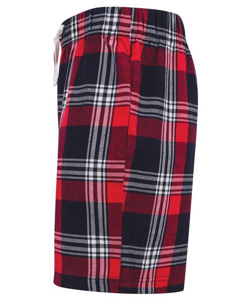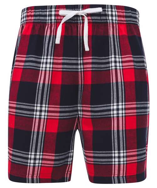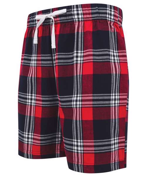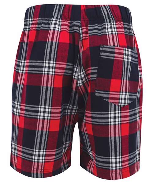 Woven tartan lounge shorts with plain hem. Full elasticated waist with contrast mock drawcord. Tear-out label.