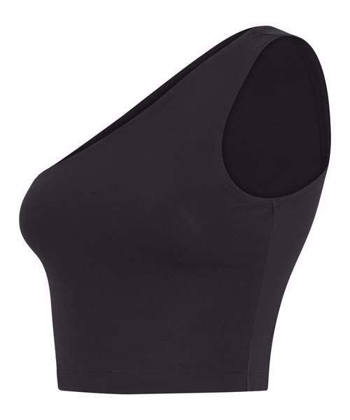 A one-shoulder cropped top with a fitted neckline that’s ultra-flattering on the shoulders. High fashion – high impact. Brand free for easy rebranding.