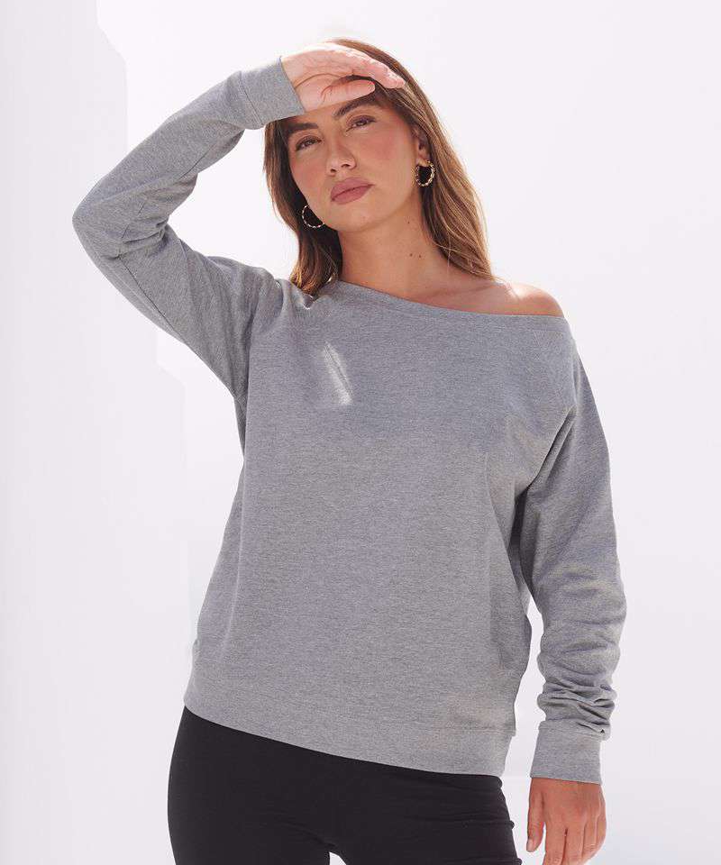 Layer up, cool down. This sweat has a relaxed fit and drape with wide neckline and raglan sleeves for comfortable lounging. Ribbed cuffs, hem and neckline with twin-needle stitching ensures a premium finish. Tear-out label for easy rebranding.