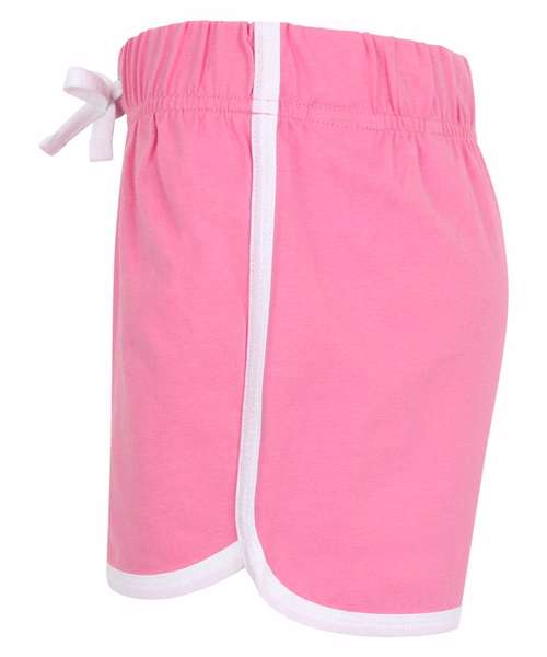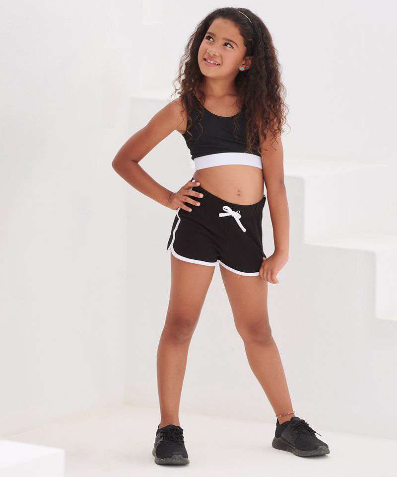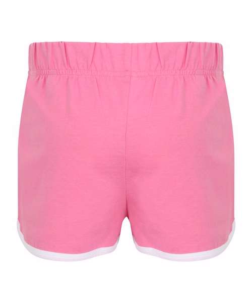 Take a sporty route to fashion with the popular retro shorts. Great style and freedom to move combined in these retro look shorts with contrast binding and sweet curved side hems. Modern, athletic and cool. Tear-out label, for easy rebranding.