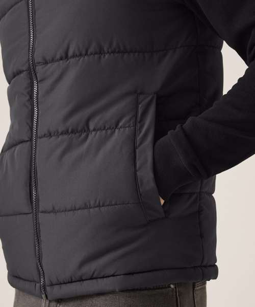 Water-repellent polyester micro poplin. Thermo-guard 180gsm insulation. 2 lower pockets. Concealed inner zip for embroidery access.