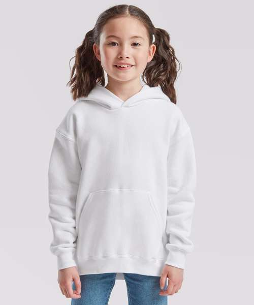 Ideal for tourism, events, leisure, casualwear and more, the kids premium hooded sweat is available in a range of colours and features a 100% cotton face for enhanced printing. Details include a double fabric hood without drawcord, in-line with European childrenswear legislation, and a front kangaroo pocket, while a single Jersey back neck tape and cotton/elastane waist and cuff ribs provide easy movement and everyday comfort.