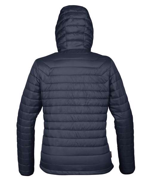 STORMTECH D/W/R durable water-resistant outer shell. Quilted body with ultra soft liner. Centre front vislon zipper with contrast zipper teeth. Elasticized cuffs. Attached hood. Adjustable hem. Set-in sleeves. Brushed tricot hand warmer pockets. Zippered pockets with garages. Chin saver. Internal full-length storm flap. Inside pocket. Internal media port. Embroidery access.