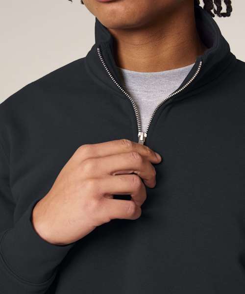 Premium, unisex, quarter-zip sweatshirt in 85% organic cotton and 15% recycled polyester. Medium fit, 280gsm. Ideal for corporatewear. Excellent printability.