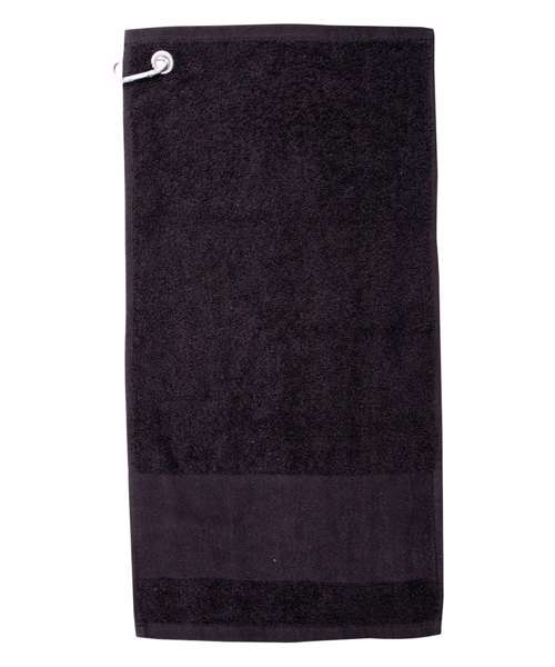 Heavyweight golf towel with deep pile and excellent absorbency. Featuring a wide border, perfect for personalisation. Finished off with a metal rivet.