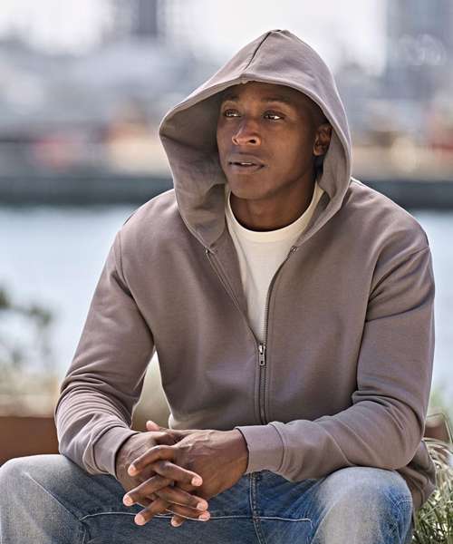 Say hello to timeless comfort in the Urban hooded full-zip sweatshirt – a relaxed classic with an urban edge. Crafted from certified organic cotton and certified recycled polyester, its silicone treatment presents a soft feel and premium quality. Small details include ribs with elastane, an SBS zip, a brushed inside and a half-moon in the neck for easier personalisation. Choose between four promotional colours that embrace the urban lifestyle.