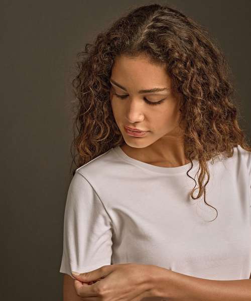 Double stitched. Double pre-shrunk. Long-fibre cotton. Enzyme-washed. Washable at 60˚C. Rib with elastane. Organic cotton.