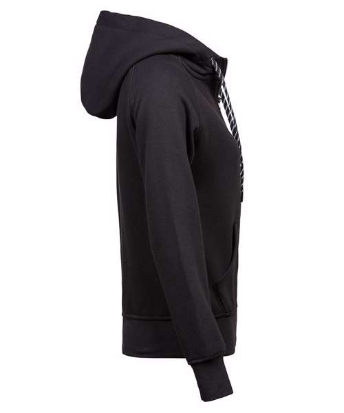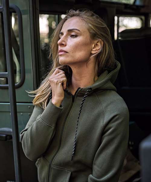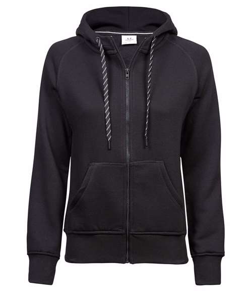 The Women’s fashion full-zip hoodie has a shaped fit. Contrast strings and neckband add a stylish touch to a garment which features elastic cuffs and waistband.