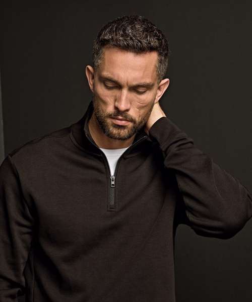 Half-zip. Ribs with elastane and SBS zipper. Herringbone neck tape. Double pre-shrunk. Silicone treatment. Unbrushed inside.