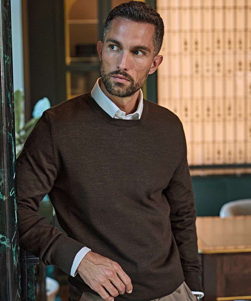 The classic knitted Crew neck, crafted in a premium Italian merino/polyacrylic blend. The ribbed details and neckline make this the perfect companion to a dress shirt or a cool tee.