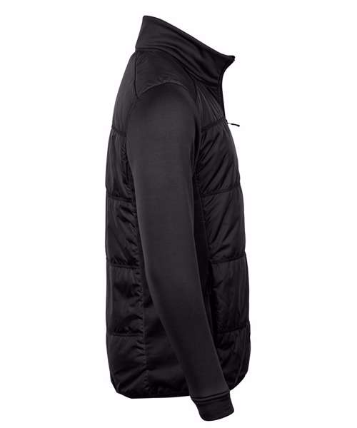 The Hybrid-stretch jacket is made from 300T polyester fabric combined with stretch fleece panels and sleeves. It’s insulated with premium DuPont™ padding on the body, with cuffs and elastic banding at the bottom hem for a modern look. It features quality SBS zips, an inner pocket and two large hidden front pockets.