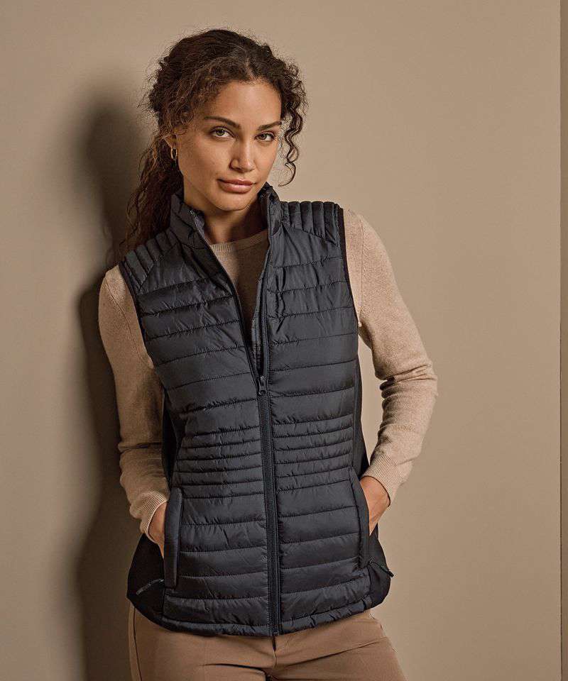 The trendsetting Women’s crossover bodywarmer is crafted from a combination of lightweight 300T polyester with padding and softshell to create a sporty, urban vibe.