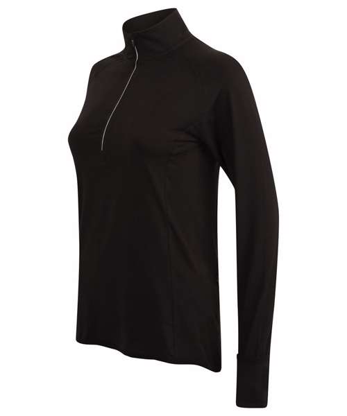 Train smarter in our ultimate 1/4 zip. Reflective zip tape and dot design on the reverse ensures maximum visibility, while the sports thumbholes and discreet fold over cuffs are perfect for when the temperature drops. The single Jersey fabric with wicking finish keeps you cool and dry, helping you to perform at your best.