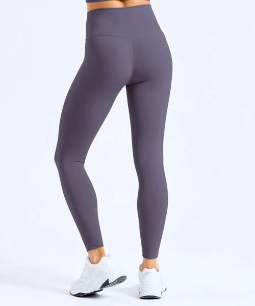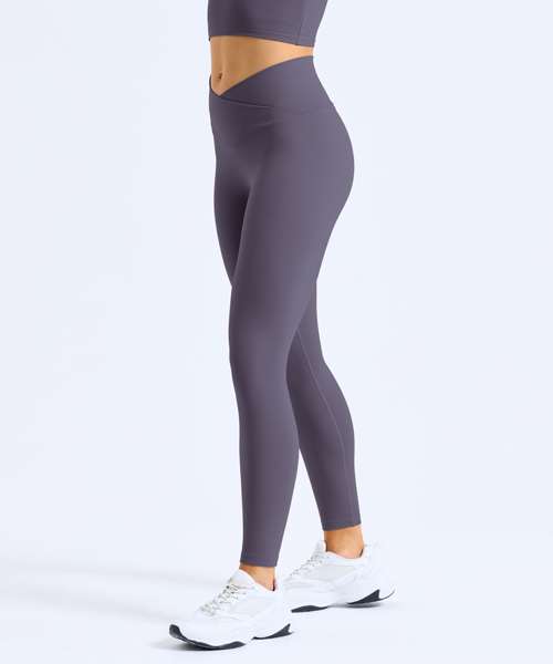 Certified recycled nylon. Stretch. Smooth finish. Cross front waistband. Full-length. Minimal seams.