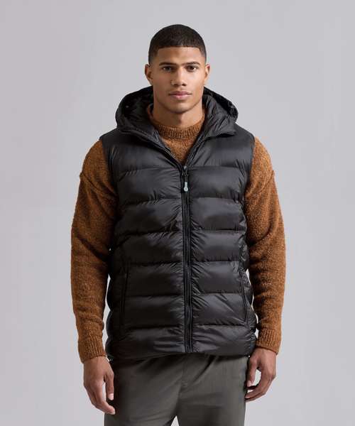 Built for warmth, the Solitude recycled hooded bodywarmer features a padded design with modern chevron side quilting for both style and insulation. An adjustable hood and hem provide a snug, personalised fit – ideal for locking in heat during colder days. It layers effortlessly over t-shirts, sweaters or polos, making it an essential addition for any man’s wardrobe.