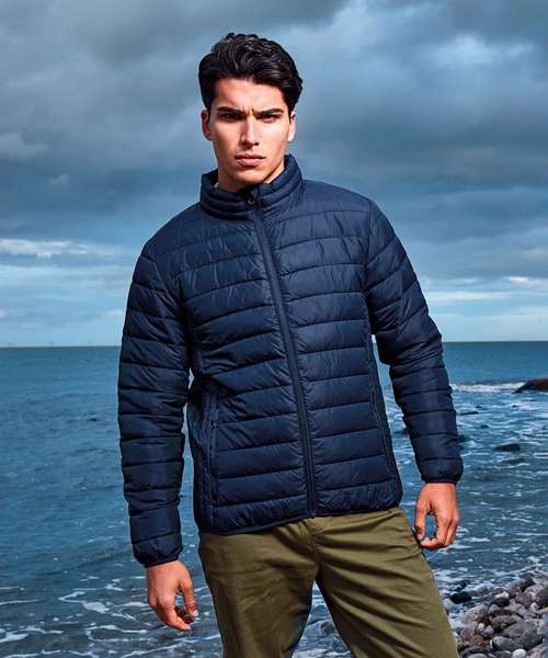 You’ll be in your element in this cool padded jacket with contrast zip and trim. Designed with horizontal quilting inside and out, the narrow vertical side stripes create a super slimline silhouette. With deep internal pockets and a clever zip guard, it’s the smart choice.