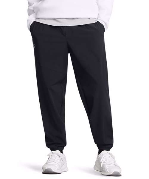 UA Storm technology repels water without sacrificing breathability. Lightweight stretch woven fabric delivers superior comfort and durability. 4-way stretch material moves in all directions. Encased elastic waistband with external drawcord. Open hand pockets and secure, snap-closure back pocket. Encased elastic cuffs. Uses a fluorine-free, water-repellent treatment. Main body fabric contains at least 80% recycled polyester, excluding trims and embellishments.