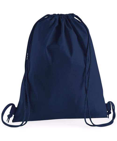 Premium cotton for enhanced durability. Superior print surface for optimal decoration. External cord attachments for ease of decoration. Rope draw cord closure.