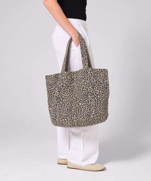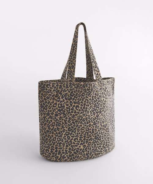 Washed-effect finish. Leopard print design. Oval base design. Self-fabric carry handles. Can be carried by hand or over the shoulder. CutAway label for ease of rebranding. Due to the garment-dyeing process, each colour is unique and may vary, with potential fading over time. Contains 70% GRS-certified recycled cotton and 30% GRS-certified polyester, certified by Control Union CU811033.
