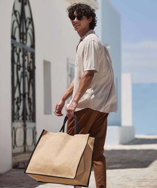 Every piece in the unlaminated Natural Starched Jute collection has angular edges and a sturdy construction for more boxy styling and structured storage. The fabric is tactile to the touch and organic in aesthetic, yet still robust and reliable. This market shopper is made for trips to the local farmers’ market or travelling to markets abroad, with a generous capacity and comfortable carry handles. Contrast colours add an extra touch of rustic charm.