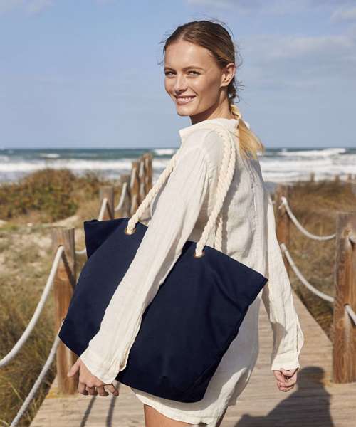 Horizontal stripes continue to influence high street fashion, and this boardwalk beach bag delivers as a key statement piece for fans of the popular maxi-bag style. Chunky rope carry handles offer classic nautical styling while premium brushed canvas makes this a robust choice for a day at the beach.