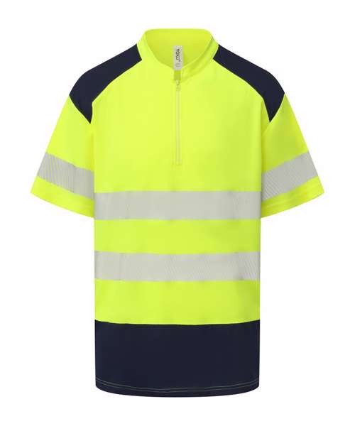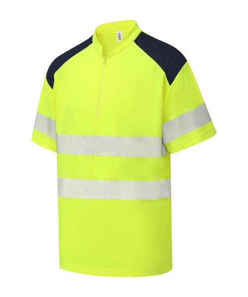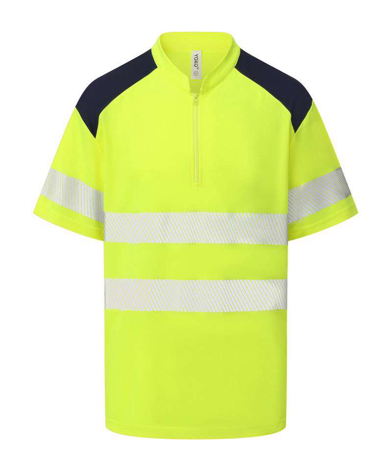 YK053: Hi-vis mandarin collar zip neck comfort trim polo (HVJ230)