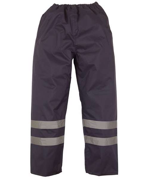 Hi-vis yellow conforms to EN ISO20471:2013 Class 1 & EN343 against foul weather.Black and Navy provide enhanced visibility (non-EN471 standard). 100% waterproof Polyester with Oxford PU coating. Two 5cm wide reflective bands around lower legs. Elasticated waistband. Snap buttons on the bottom for adjustment. More colours available, code HVS462 & HVS463. Matching jackets, code HVP211, HVP218, HVP300, HVP301 & HVP303.