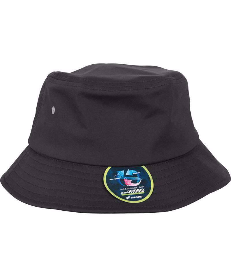 Nylon bucket hat. Colour-highlighted eyelets. Innovative high-tech hybrid technology. Incorporated nylon fabric. Breathable. Repels dirt and water.