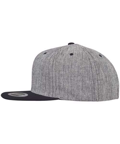 Melange solid snapback. Classy cotton twill. Fine melange look. Flat brim in black. Typical snap closure.