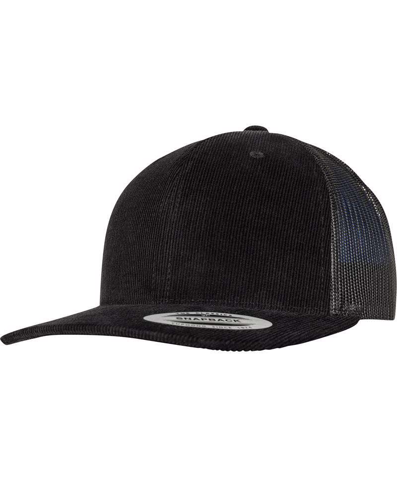 Retro cap. Classic cord. Casual mesh. Curved visor with plenty of decorative seams. Practical snapback closure.